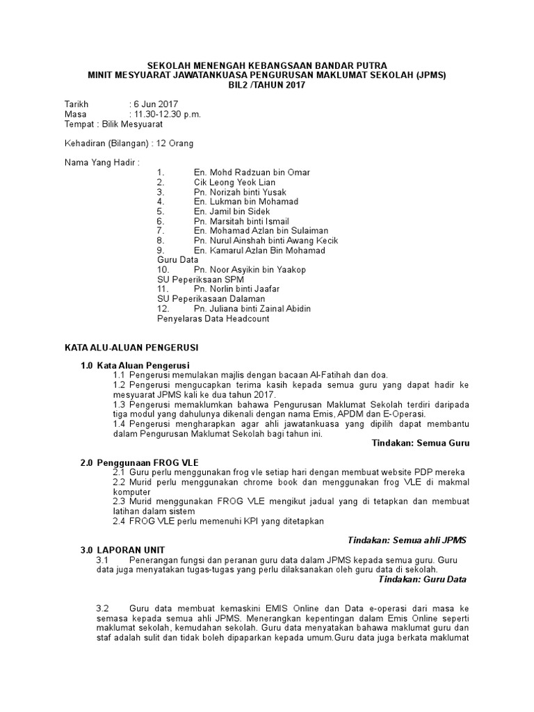 Minit Mesyuarat Jpms Kali Ke 2 Pdf